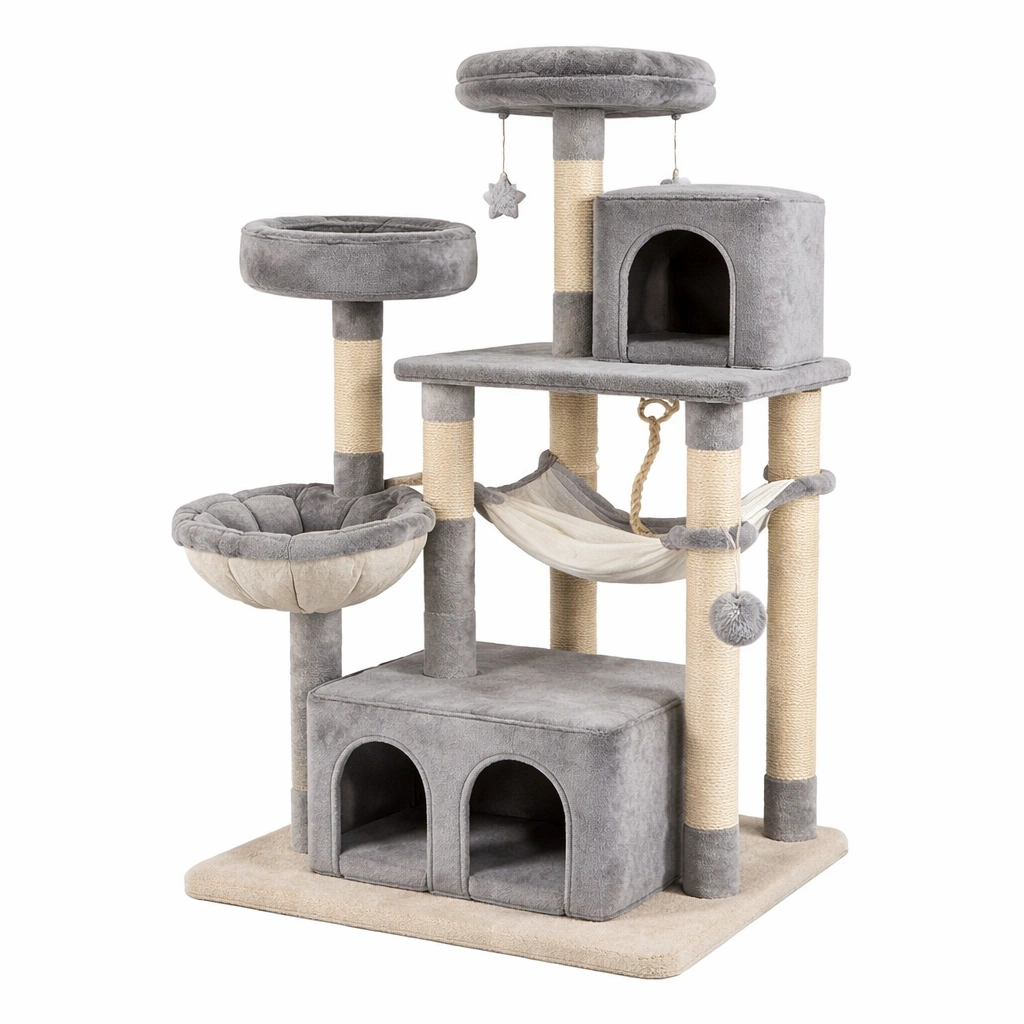 Árbol para gatos de tela de felpa y sisal gris