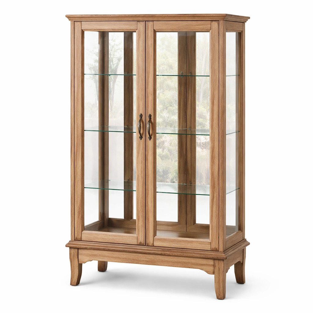 Vitrina de madera de roble y vidrio templado natural