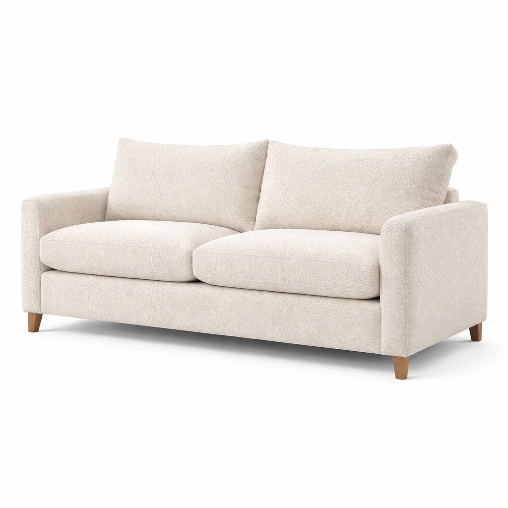 Material: Estructura de madera, tapizado en poliéster, patas de madera.
