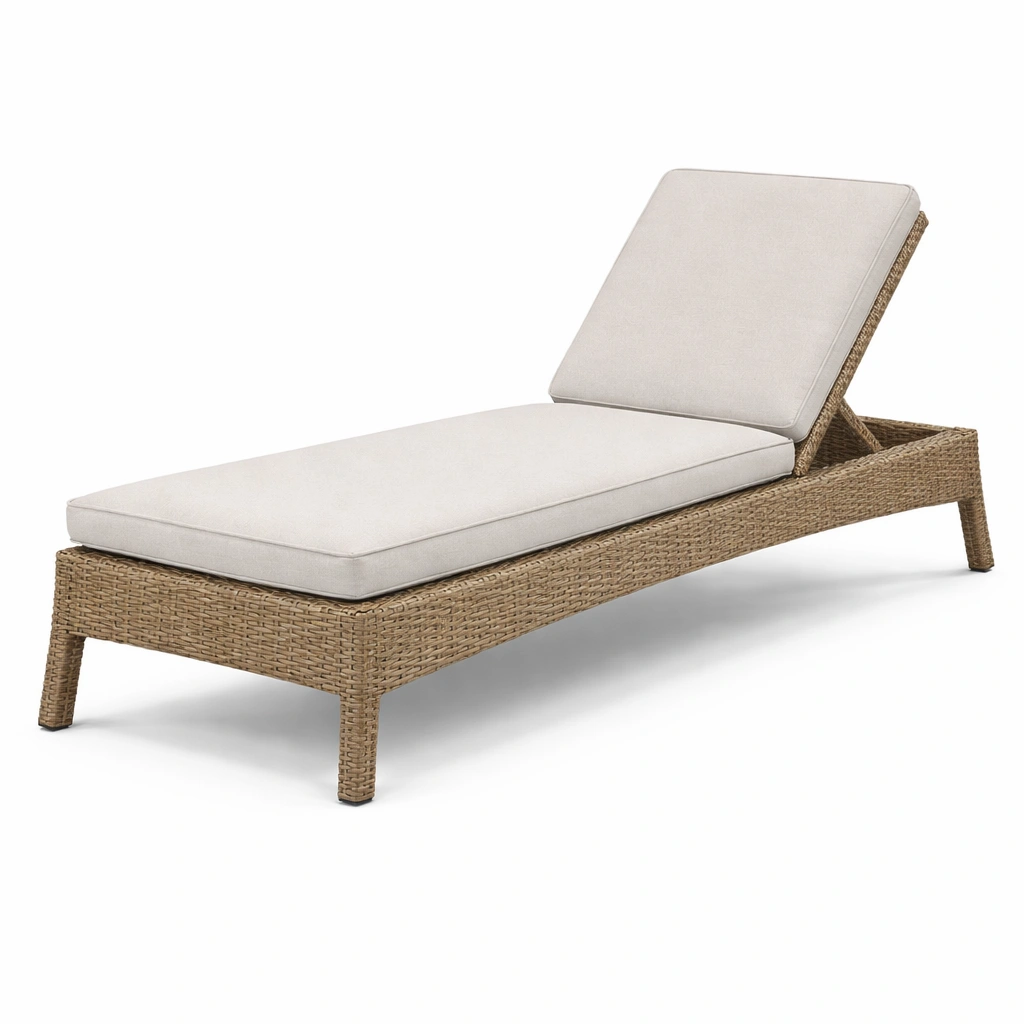 Materiales: Estructura de ratán sintético, cojines de espuma de poliuretano con funda de poliéster